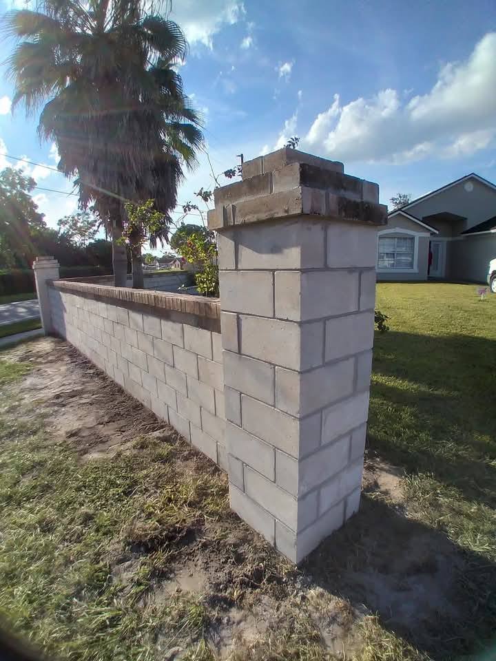 I build brick and CMU walls, fireplaces, chimneys, pavers, walkways, patios, veneers, retaining walls, and monument structures.